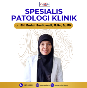 Dokter Spesialis dr AGUNG MONOLIPA, Sp.PDSpesialis Penyakit Dalam dr KARUNIA DIAS BHASKORO, Sp.PDSpesialis Penyakit Dalam dr. SUHARTO HESTI KUNCORO, MSc.,Sp.KJSpesialis Kedokteran Jiwa dr RETNO P. R, M.Med.Sc.,Sp.KJSpesialis Kedokteran Jiwa dr. Ariane Yudhianti, Sp. BSpesialis Bedah dr RINA FATMAWATI, Sp.OGSpesalis Kandungan DR. ASTRIANA PRAHARANI. SP.A.Spesalis Anak Dr. Milda Khoiriana, Sp.RadSpesalis Radiologi dr. Siti Endah Susilowati, M.Sc, Sp.PKSpesialis Patologi Klinik drg. Erdananda Nindya Wirawan, Sp.KG, M.Sc, Sp.PKSpesialis Gigi dan Mulut dr. Noor Alia Susianti, Sp.N, DAIFDN, AIFO-KSpesialis Saraf